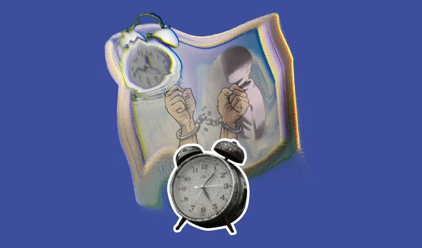 Seolah jarum jam hanya berputar di tempat/ Dan masa depan telah dibatalkan diam-diam/ Kita mendengarkan lagu yang sama/ Memakai baju…